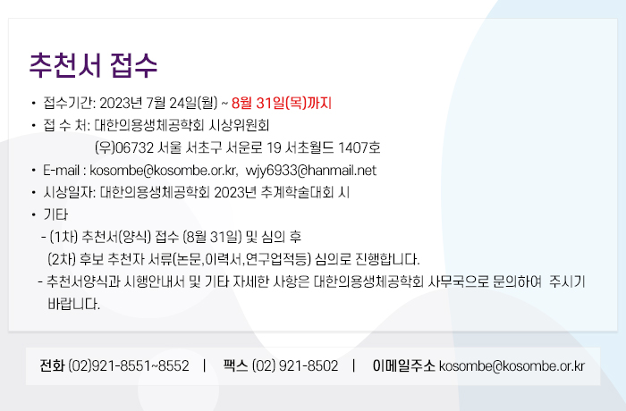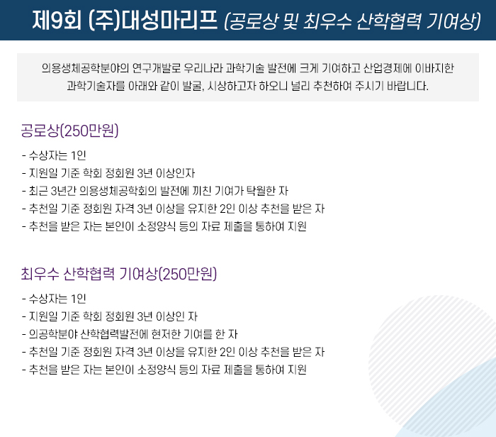 [KOSOMBE]제30회 대한의용생체공학상 및 제9회 의공학상(대성마리프/루트로닉)
