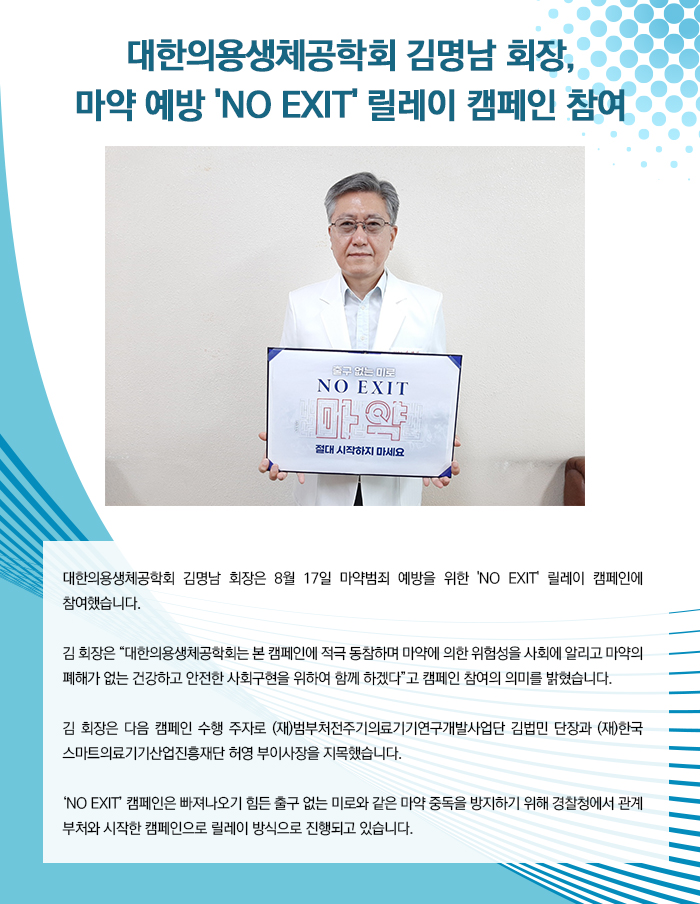 대한의용생체공학회 김명남 회장, 마약 예방 'NO EXIT' 릴레이 캠페인 참여