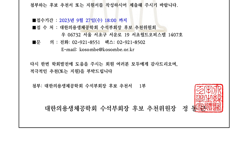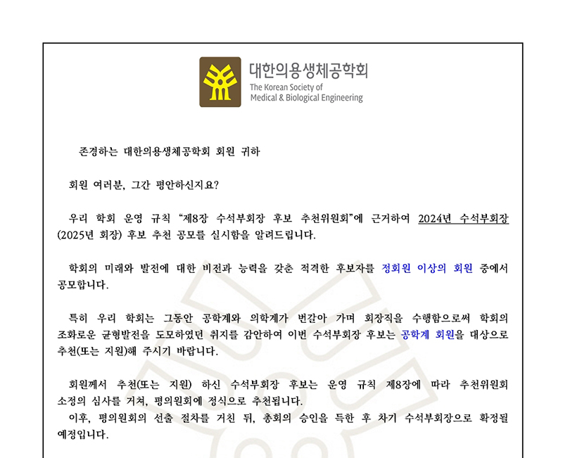 수석부회장(2024) 후보 추천 공고 안내