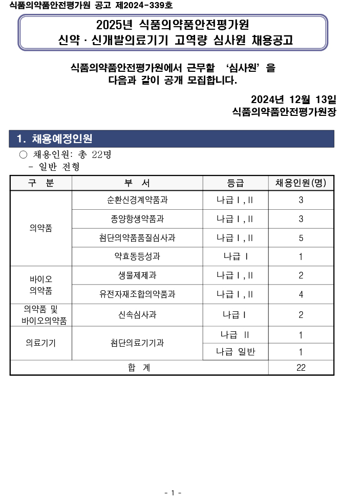 2025년 식품의약품안전평가원 신약 및 신개발의료기기 고역량 심사원 채용공고문.hwpx