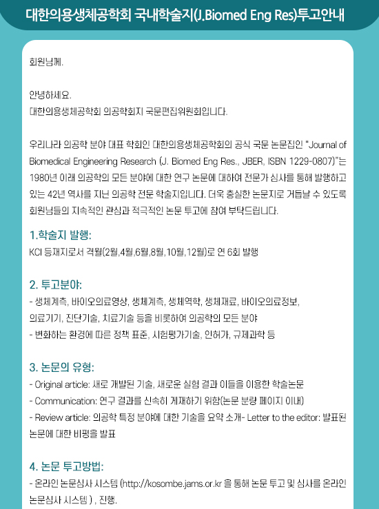 대한의용생체공학회 2022 국내학술지 (J. Biomed Eng Res) 투고안내