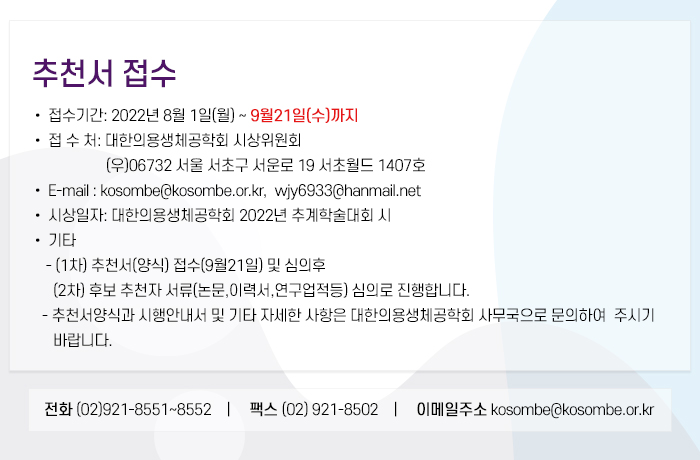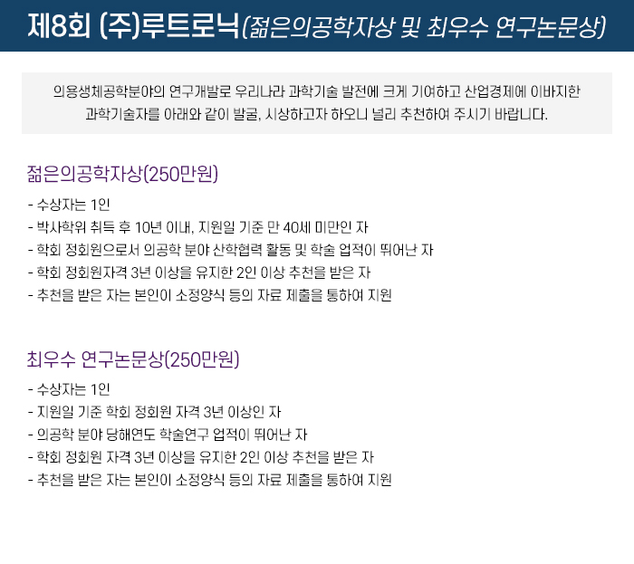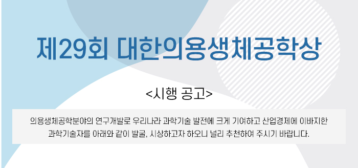 (추천서 접수기간 연장) 제29회 대한의용생체공학상 및 제8회 의공학상(대성마리프/루트로닉)