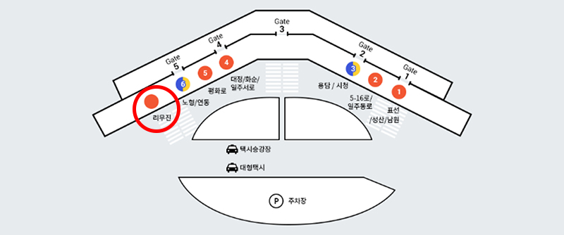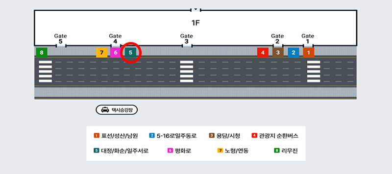 [600번 & 601번] GATE 5번 출구, 우측방향 공항 리무진 버스 승차장 |